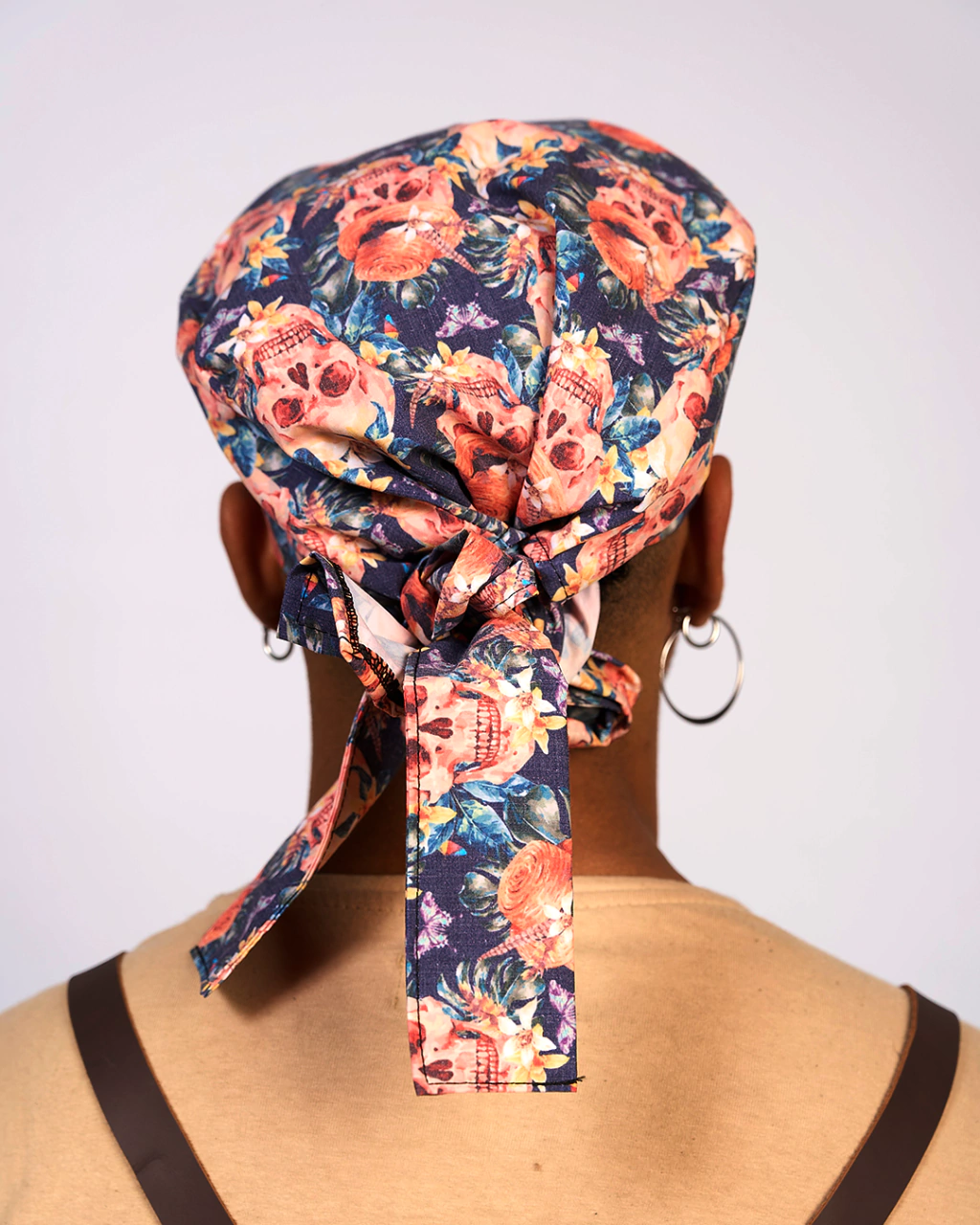 Confeccionada en arciel (75% poliéster, 25% algodón), resistente y liviana, esta bandana estampada con el icónico patrón de calaveras NTM aporta carácter y personalidad a tu look profesional. Tamaño estándar y diseño tipo pañuelo para atar, adaptable a cualquier medida.