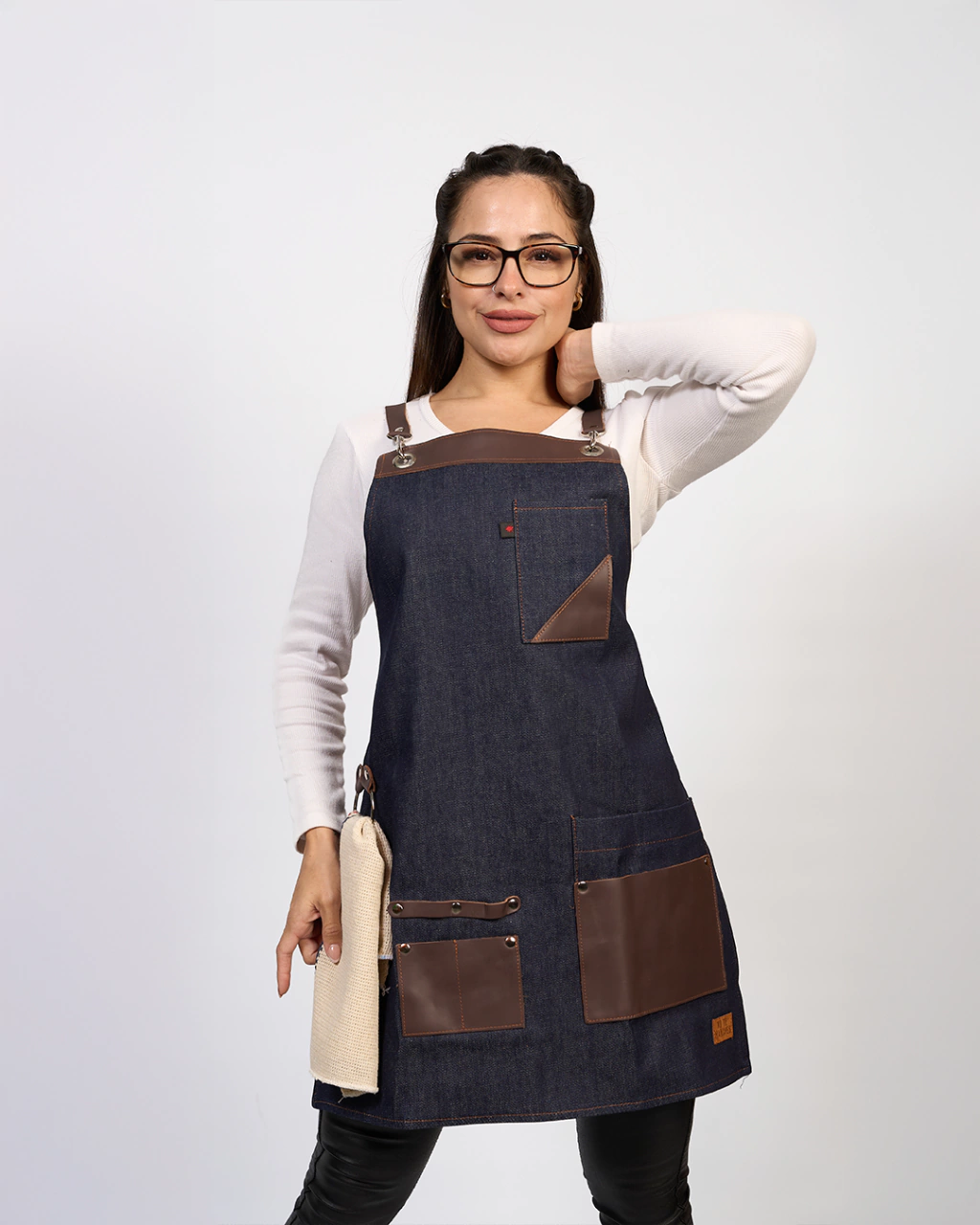 Pensado para cocina y asador. Confeccionado en denim con detalles y bolsillos en cuero, mantiene la simpleza del Moe pero suma carácter y funcionalidad: bolsillo doble, bolsillo superpuesto, porta‑herramientas y aro porta‑repasador para trabajar sin frenar.