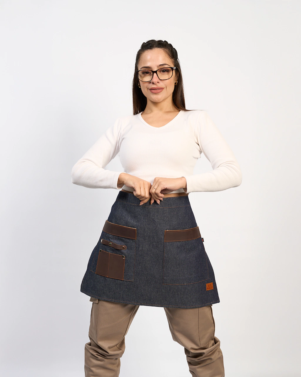 Clásico y funcional, pensado para uso cotidiano. Confeccionado en denim con gran resistencia, suma dos bolsillos amplios y un porta‑herramientas de cuero para tener todo a mano. Diseño original que combina practicidad y presencia.
